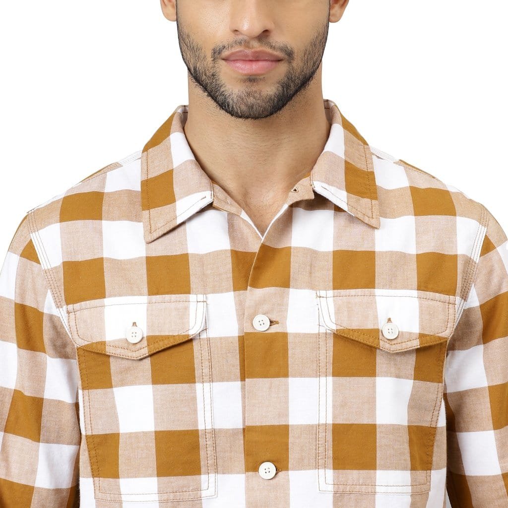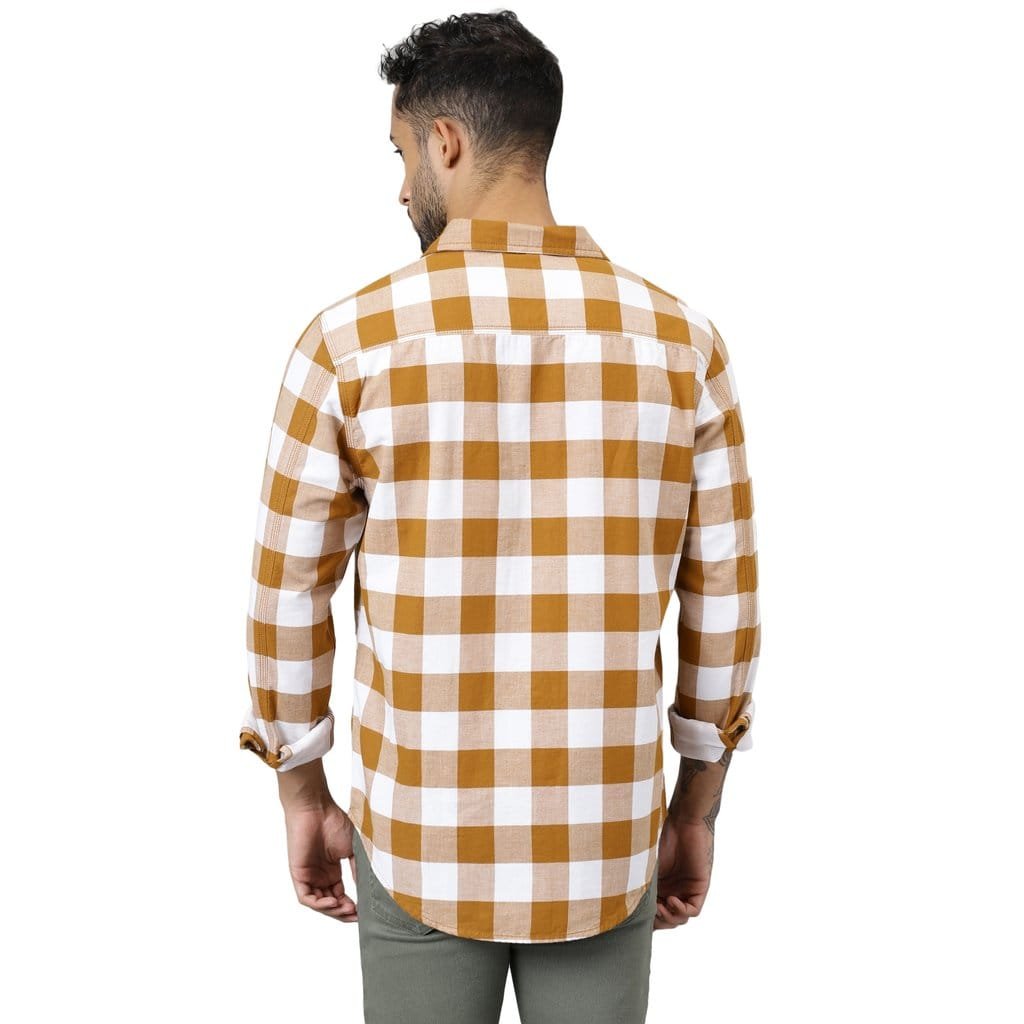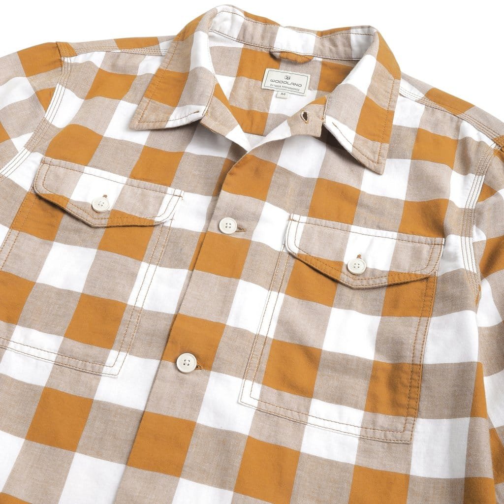 - Flannel Shirt in a rustic mustard/white shirt is perfect for casual wear or for the outdoor activities. The button-up shirt features two chest pockets with buttons on it and a shirttail hemline. The shirt can be layered under a cardigan or a jacket and you can wear it tucked or untucked.