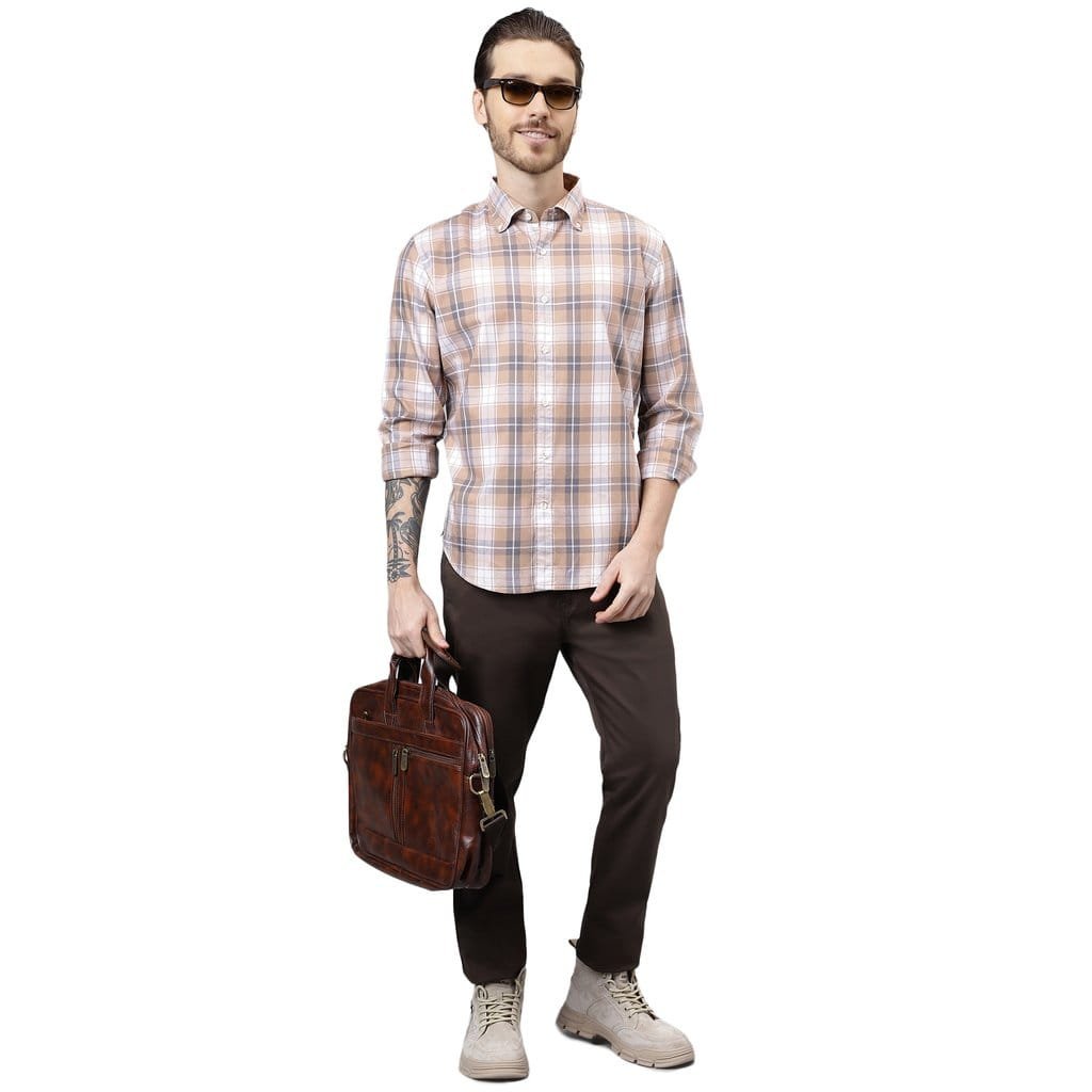 WOODLAND MFCS 125 FULL SLEEVE BEIGE MULTI CHECK SHIRT