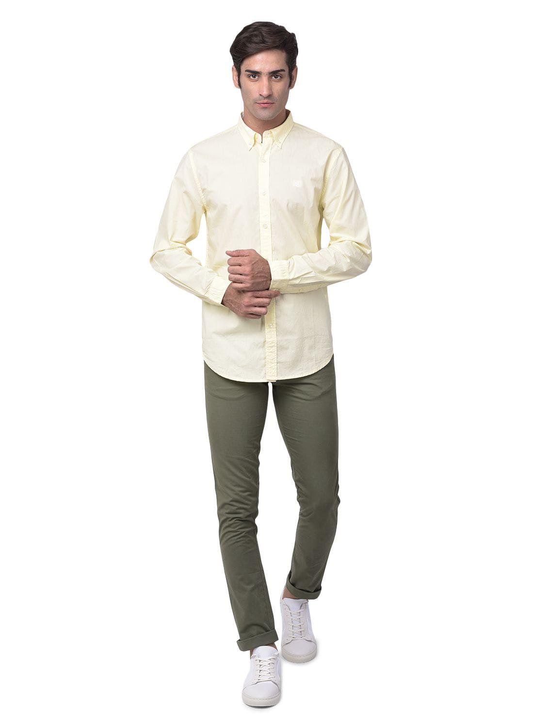 - Stand out full sleeves shirt for men in camouflage green from Woodland. It features a front button closure, adjustable cuffs and keeps you comfortable all day long.