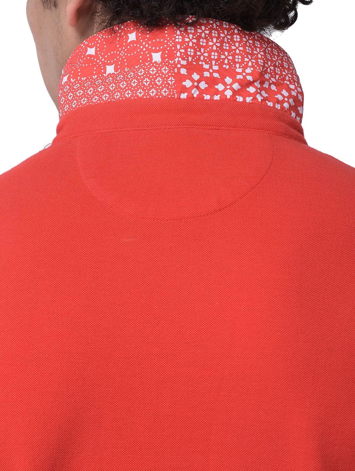 - Easy going t shirt in a boxy colour combination of wine and white is cut from cotton. The t shirt has a collared neckline, a three button placket and short sleeves.