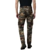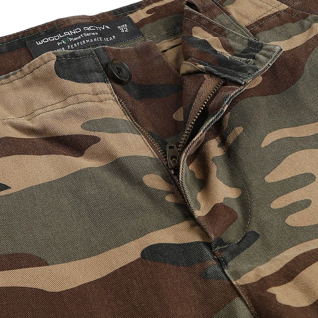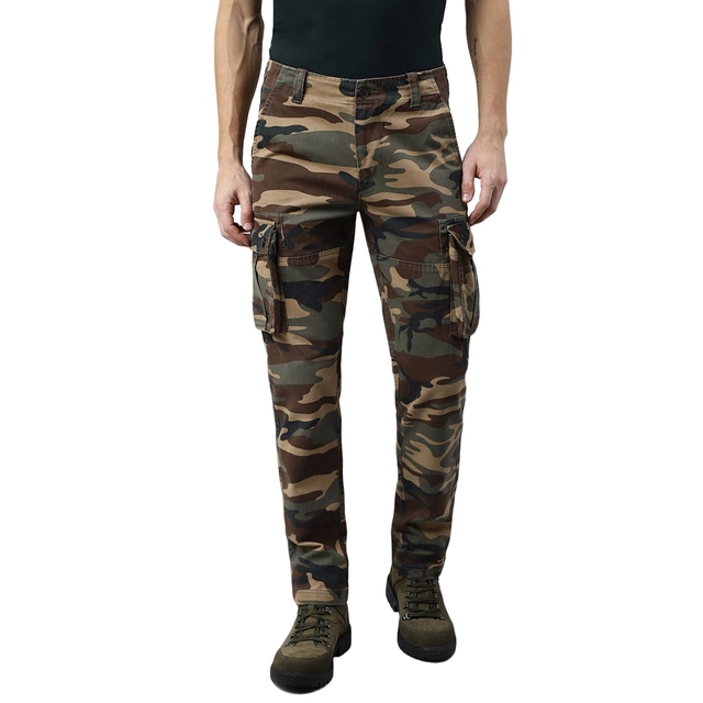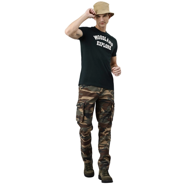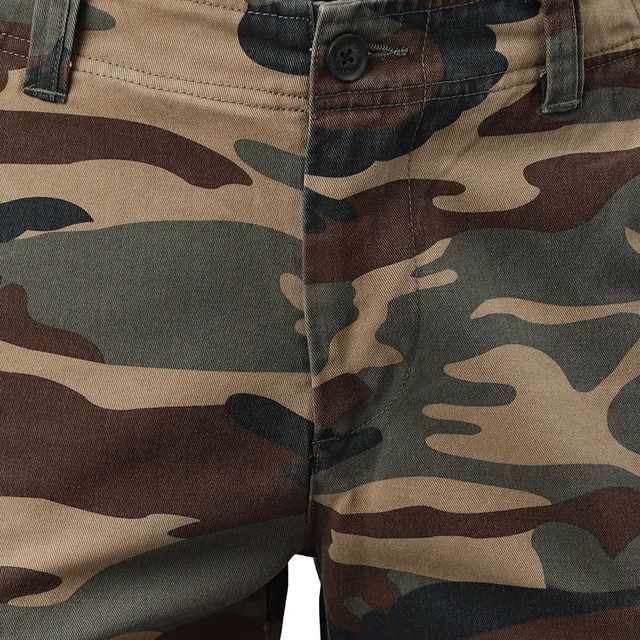 • Enjoy your relaxed day-out in this pair of camouflage green cargos by Woodland. Flaunting a simple and neat design, the cargos for men feature button closure with zip fly and belt loops, two hand pockets, two flap pocket on thighs with snap button closure, and two back pockets with button closure. Cut from cotton the cargos are comfortable for outdoor and casual wear.