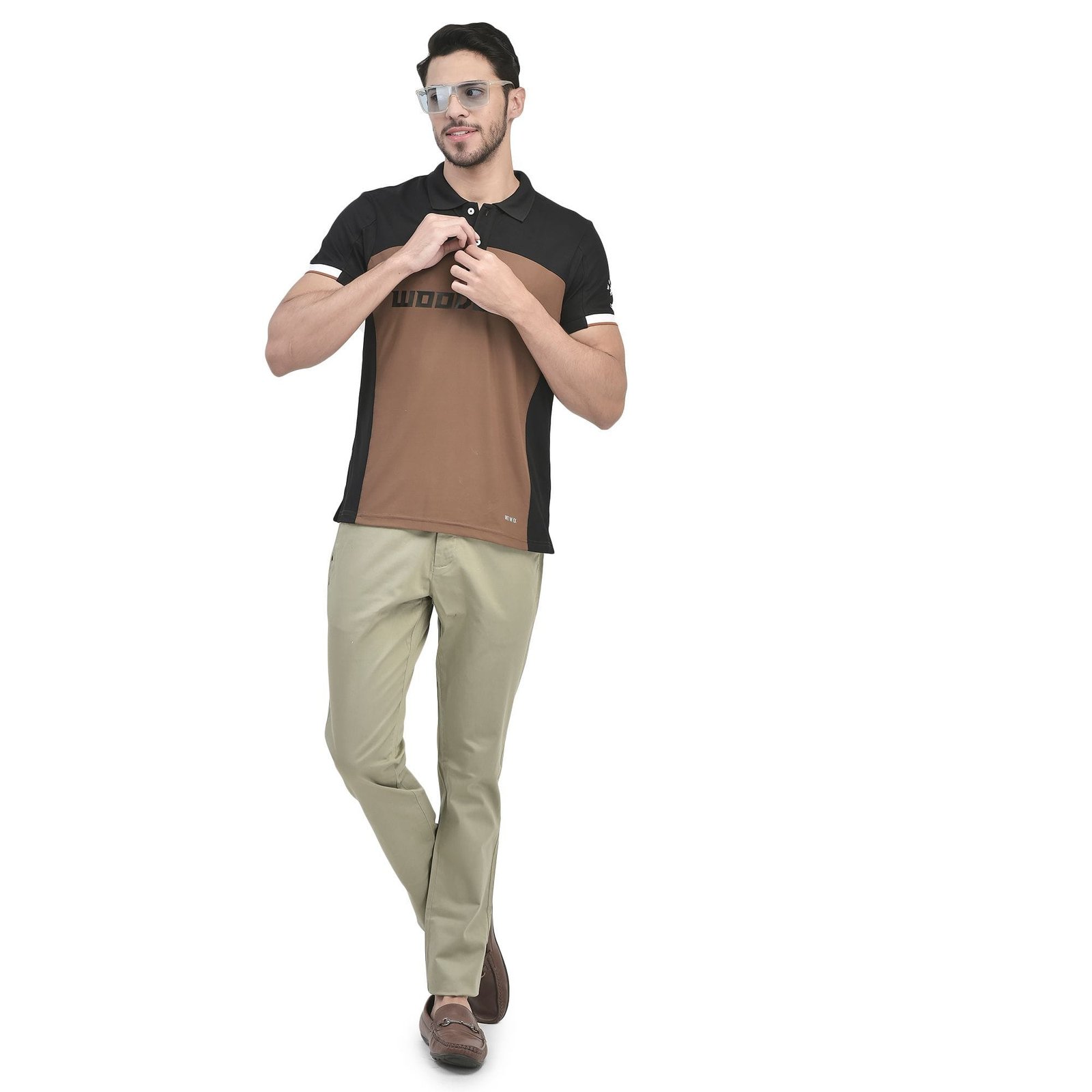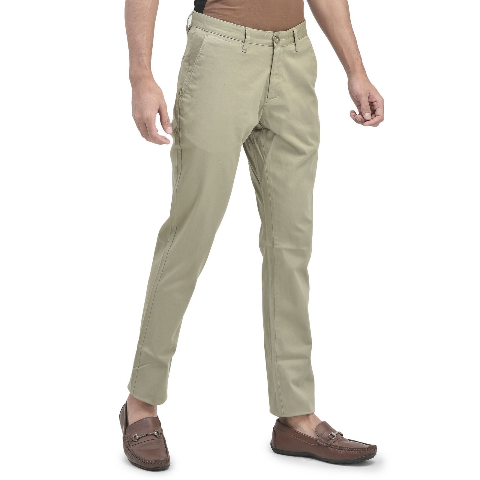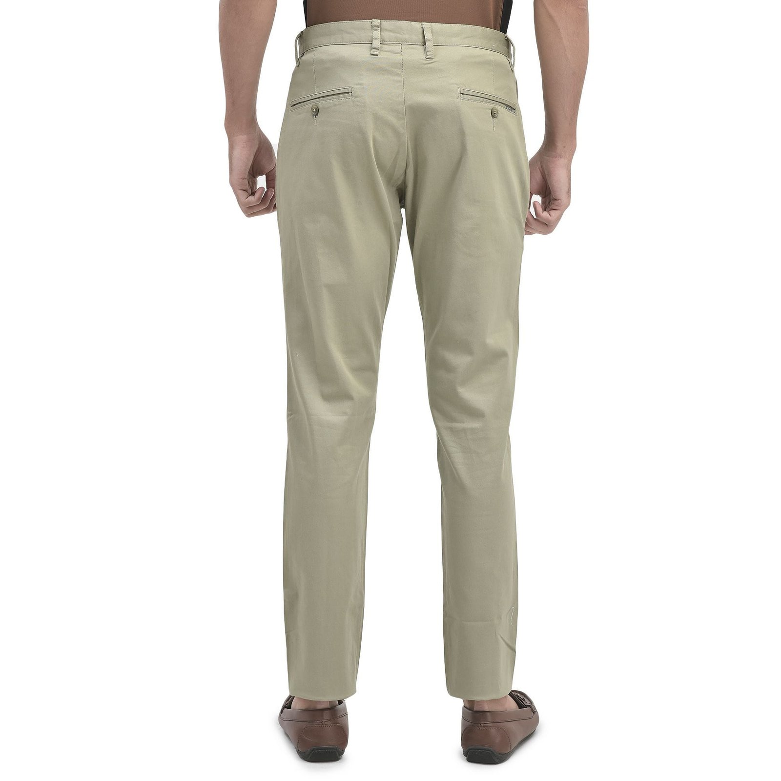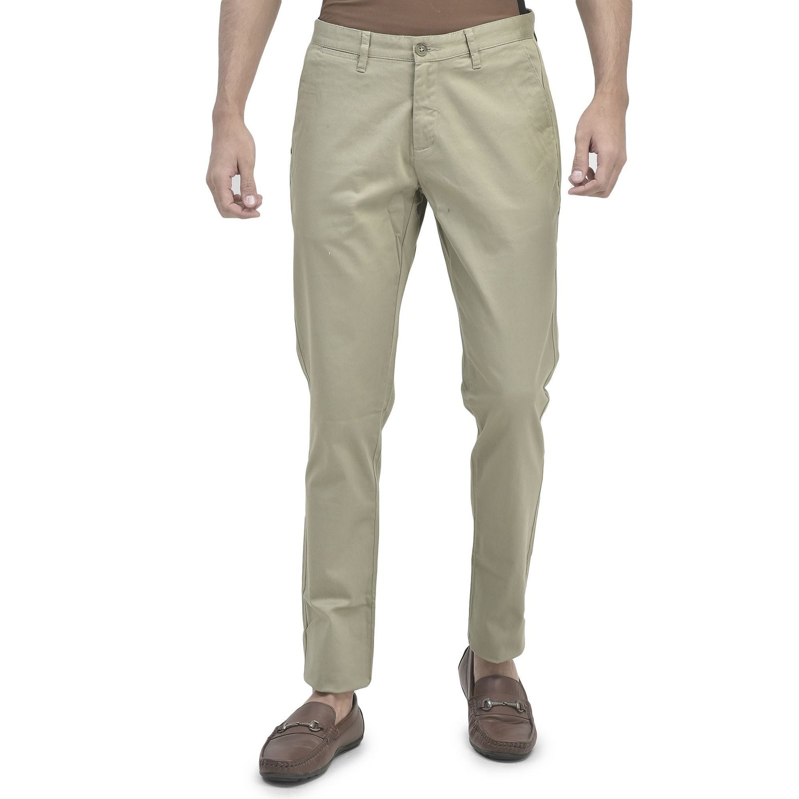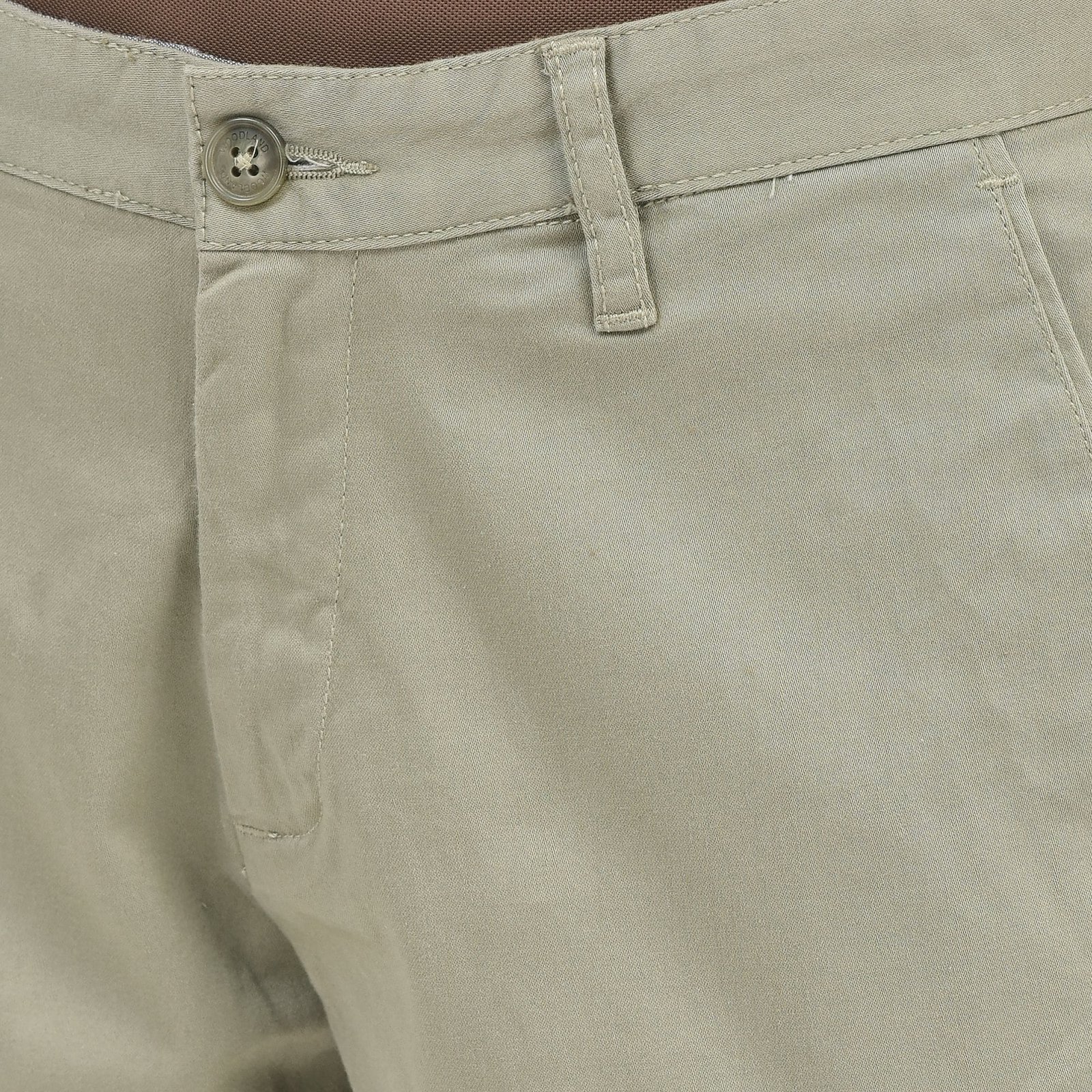 - Stretchy cotton spandex blend offers a flexible feel to this versatile navy chinos with a clean, classic silhouette. The satin chinos for men by Woodland features an antimicrobial treatment for better protection against bacteria, zip fly with button closure, zip pockets for storing valuables, two back welt pockets and belt loops. The spandex blend gives a stretch ability to the chinos for better movement.
