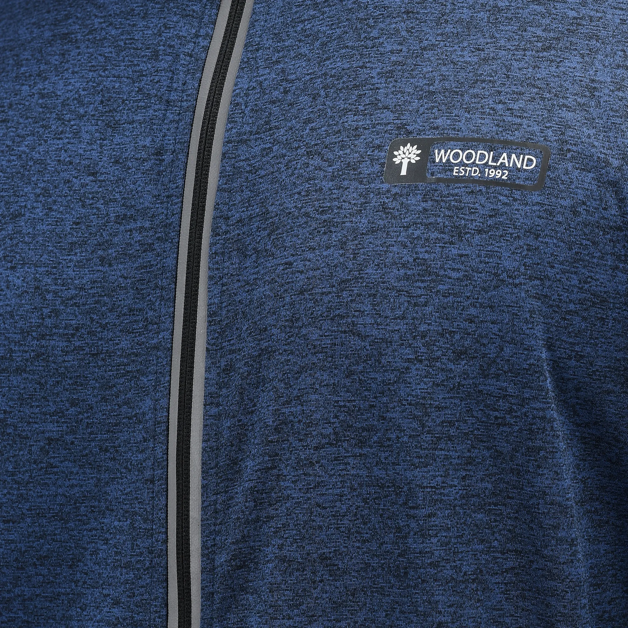 - Navy jacket for men is made from polyester and sports a fit that can be layered as well as worn on its own. The full sleeves jacket for men features a stand collar, two side pockets with zipper that safely stows all your essentials, and is finished with Woodland branding on chest.